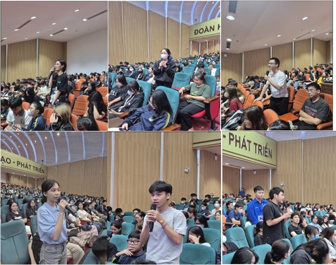 Sinh viên đặt câu hỏi và trả lời câu hỏi tại phần giao lưu cùng diễn giả |